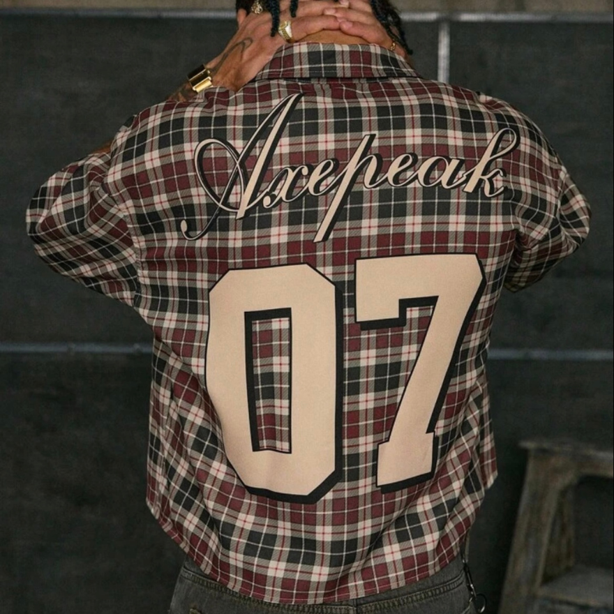 AXEPEAK Men's Loose Fit Turn-Down Collar Short Sleeve Plaid Shirt , Emo